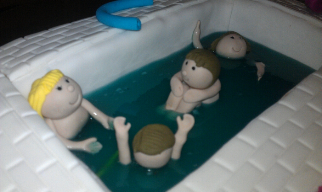 Aquí estamos de nuevo con otro cumpleaños, porque como ya sabéis los que seguís el blog, este es el mes de los cumpleaños de mis hijos, septiembre. Después de barajar varias opciones, decidimos hacer una tarta piscina para el cumple, porque allí lo celebramos, en la piscina.